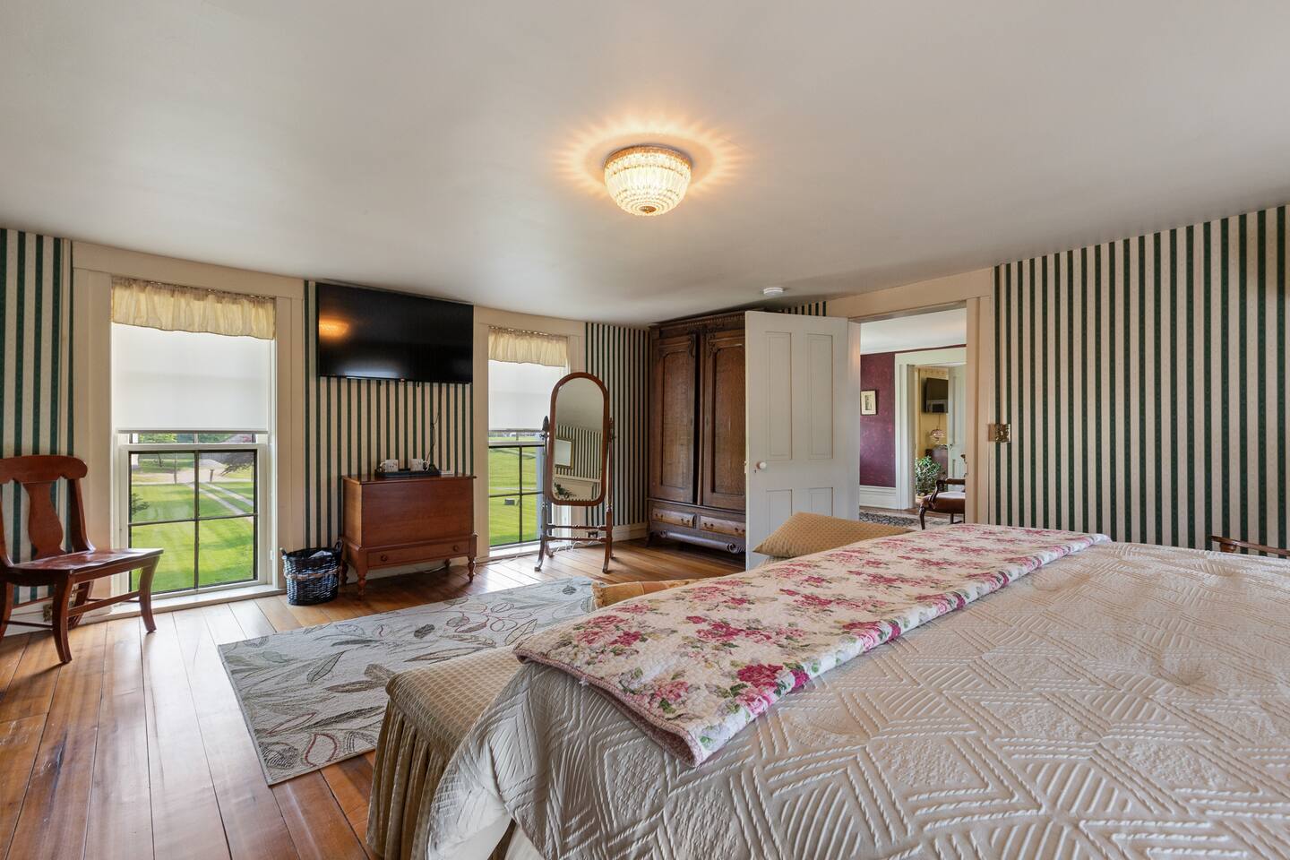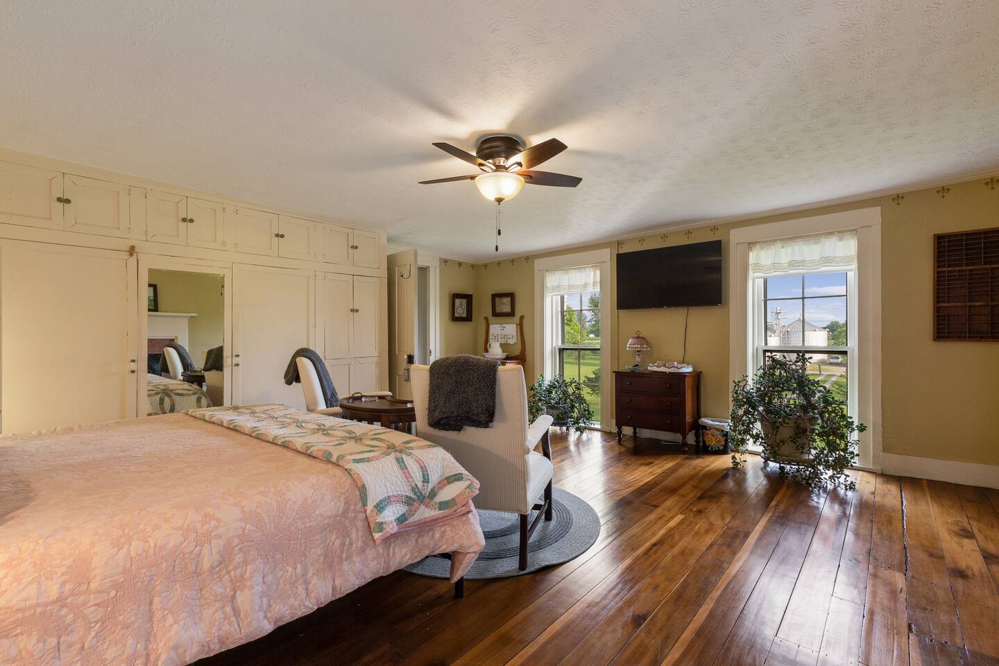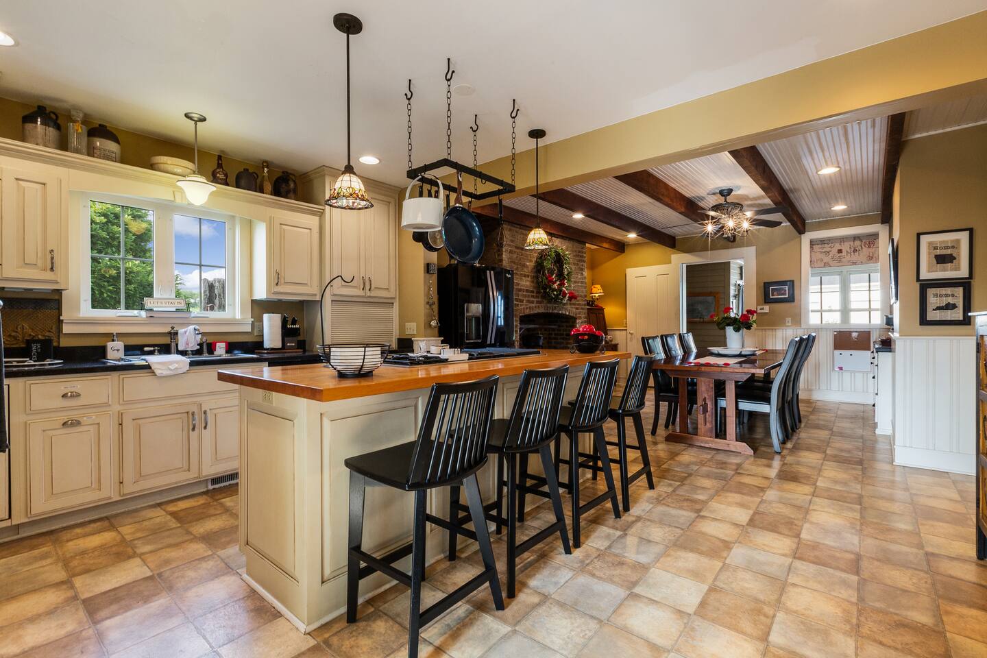 This elegant farmhouse retreat is thoughtfully designed for comfort, connection, and memorable stays. Large living areas, historic character, and peaceful views make it perfect for both relaxing and gathering.
