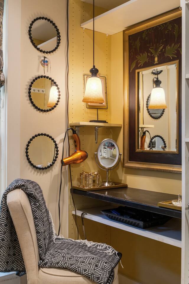 Full bathroom with large walk-in shower + makeup area