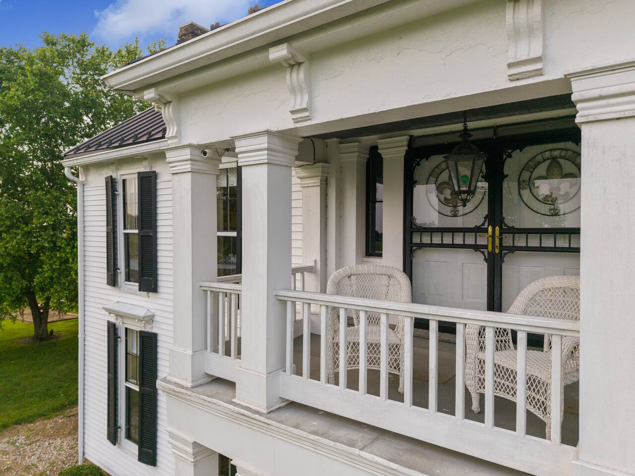 Sunlit sitting porch for morning coffee or evening cocktails