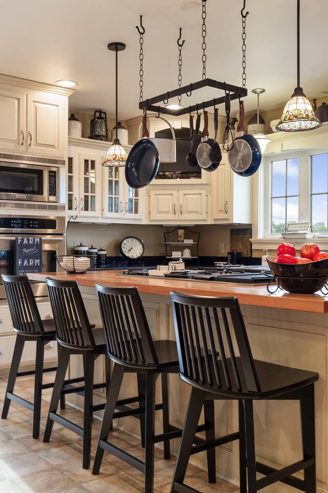 Fully stocked chefβs kitchen with gas range & island seating