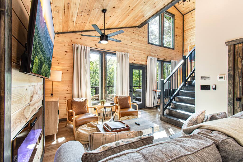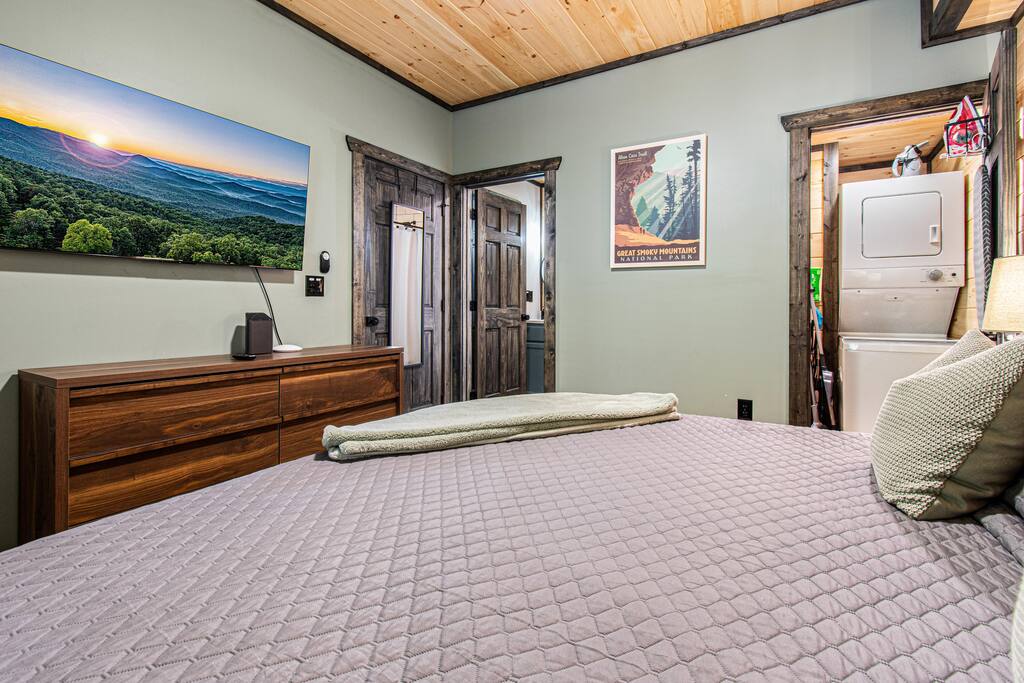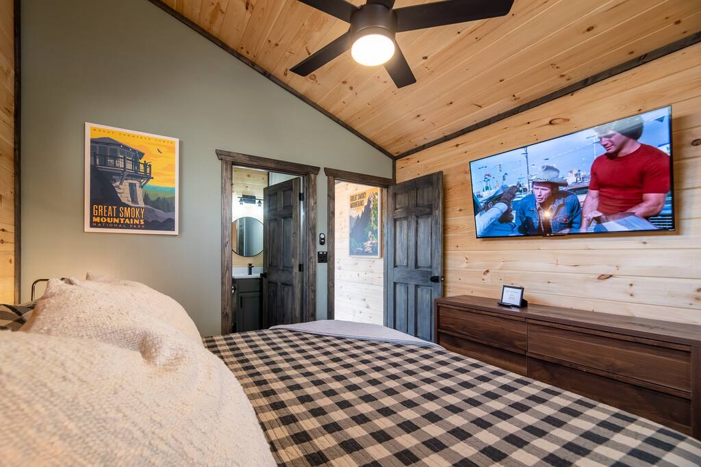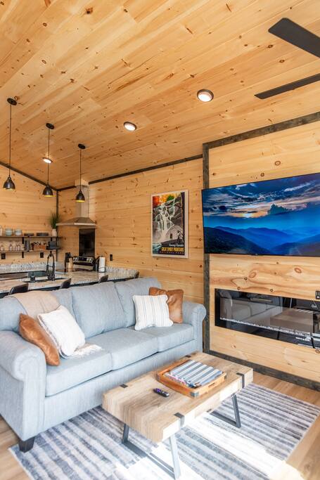 •Large smart TV for movie nights, plus mountain-inspired décor for authentic cabin vibes.