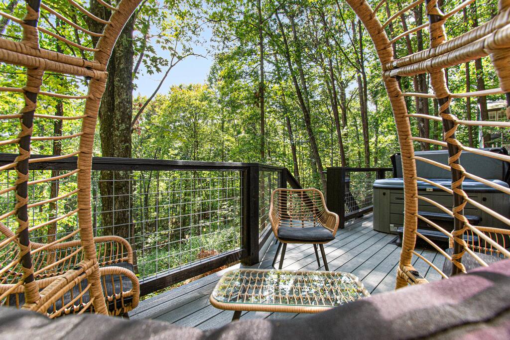 • Porch with chairs and table—enjoy peaceful wooded privacy, just minutes from Gatlinburg attractions and Winterfest lights.