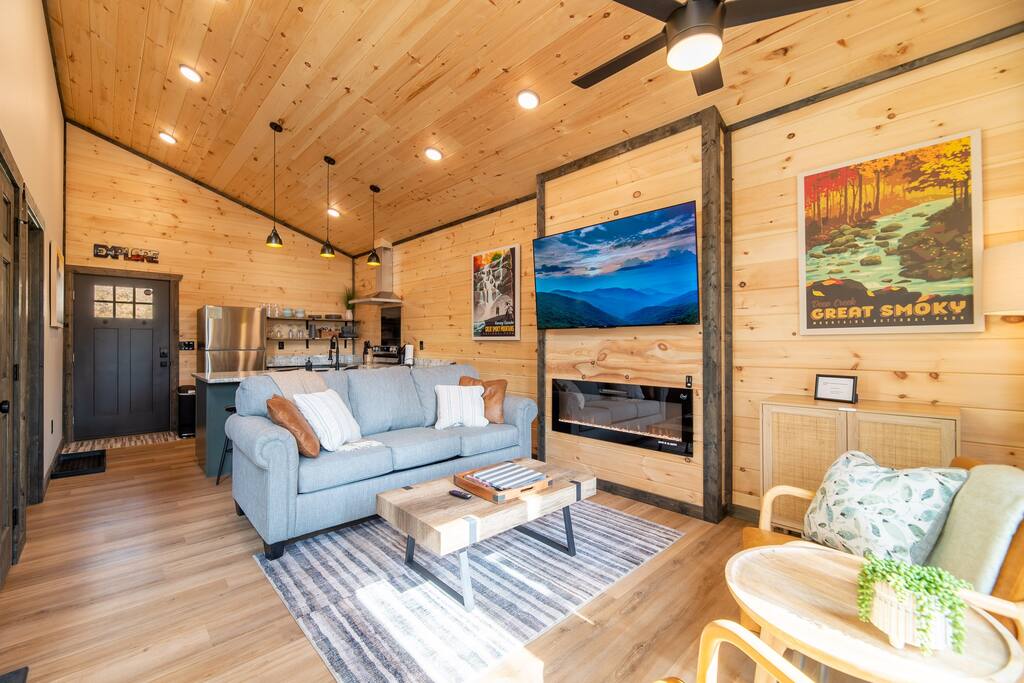 •Spacious, open-concept with plush seating and cozy gas fireplace—ideal for winter evenings after exploring Gatlinburg or a day of hiking in the Smoky Mountains.