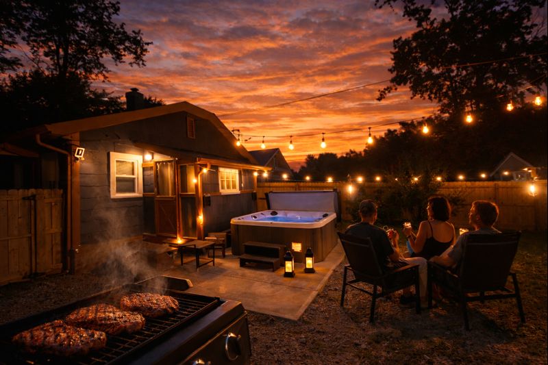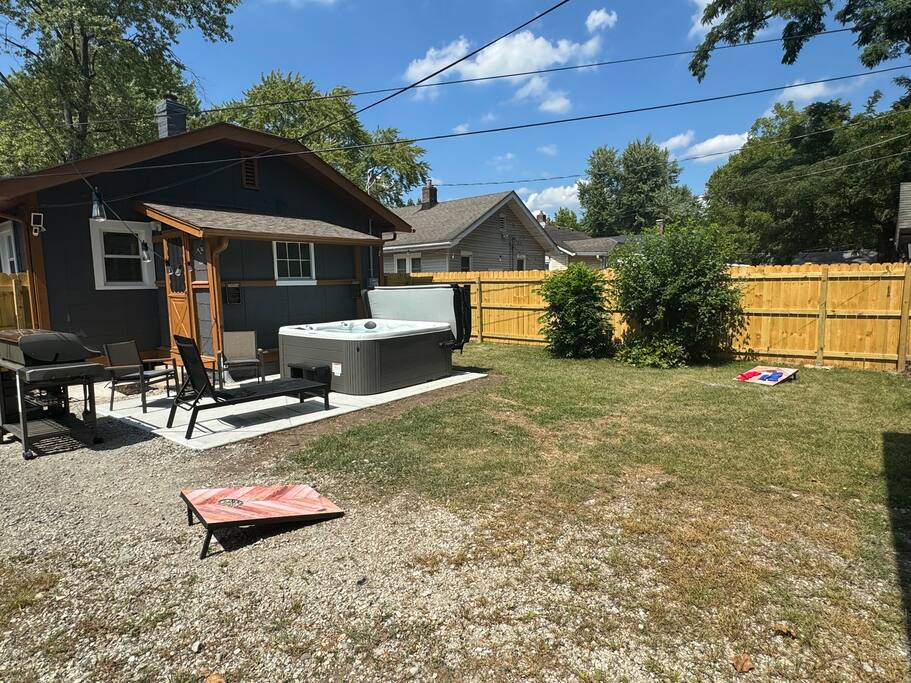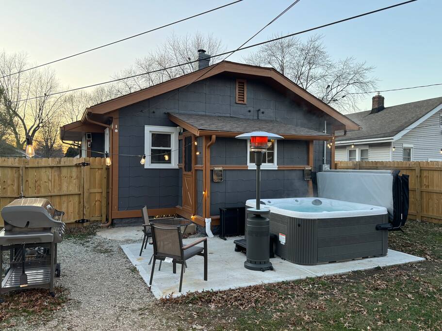 Boho-chic retreat in Broad Ripple, Indianapolis with a private hot tub Airbnb Indy guests love, firepit, and fenced backyard. Walkable neighborhood near dining, nightlife, and the Monon Trail. Ideal for business travel Indianapolis, couples getaway Indy, or small groups. Pet-friendly and just minutes to downtown.