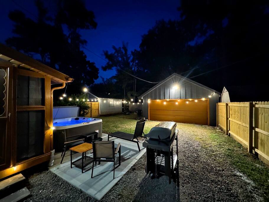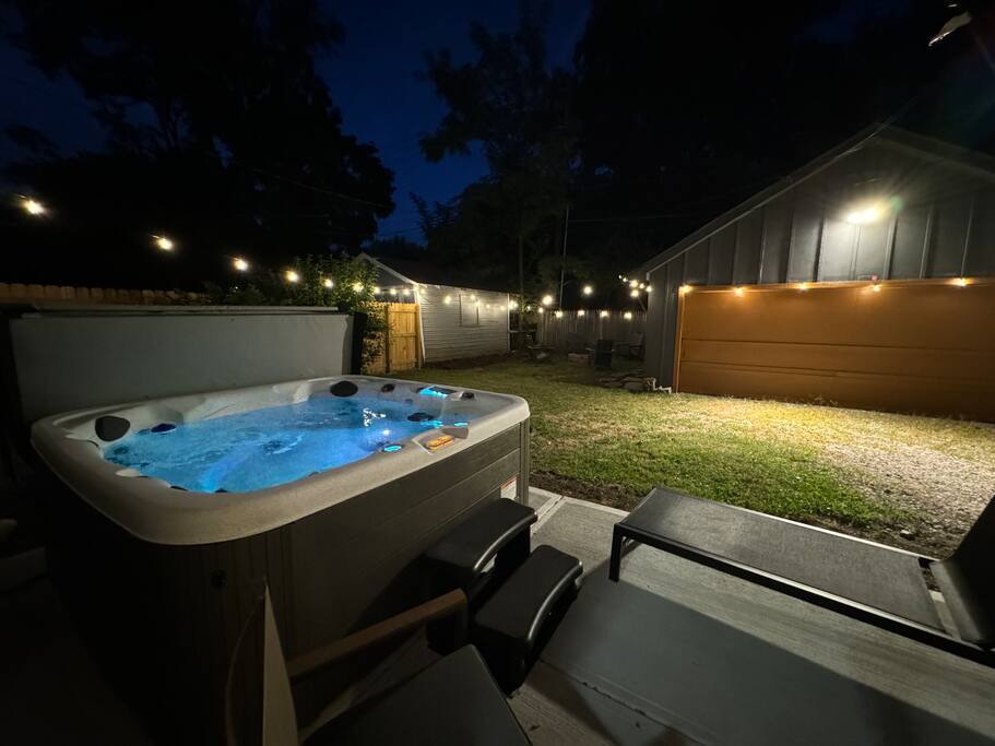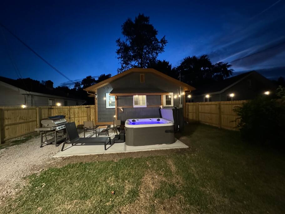 • Private hot tub, firepit, patio heater & fenced yard
