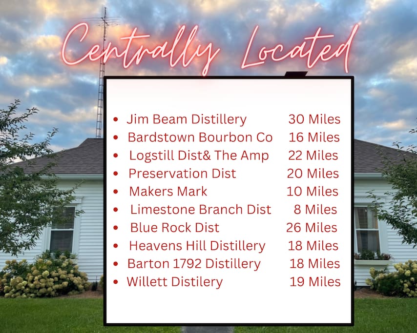 You’re close to everything bourbon lovers come for — Maker’s Mark, Heaven Hill, Jim Beam, Buffalo Trace, Woodford Reserve, Bardstown Bourbon Company, and more — while still enjoying a quiet, charming neighborhood that lets you truly unwind after a full day on the trail.