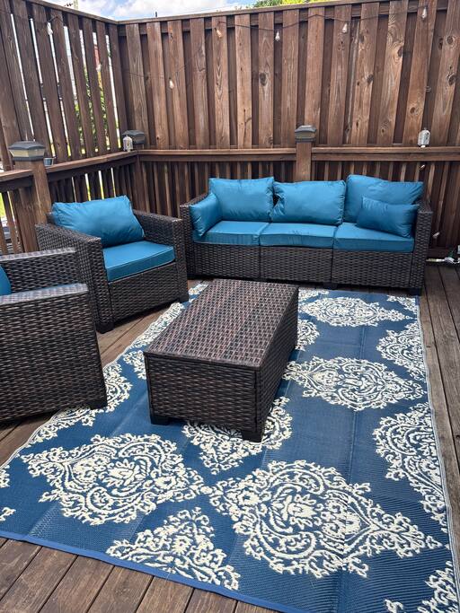 🌙 A cozy deck and outdoor seating for relaxing evenings
